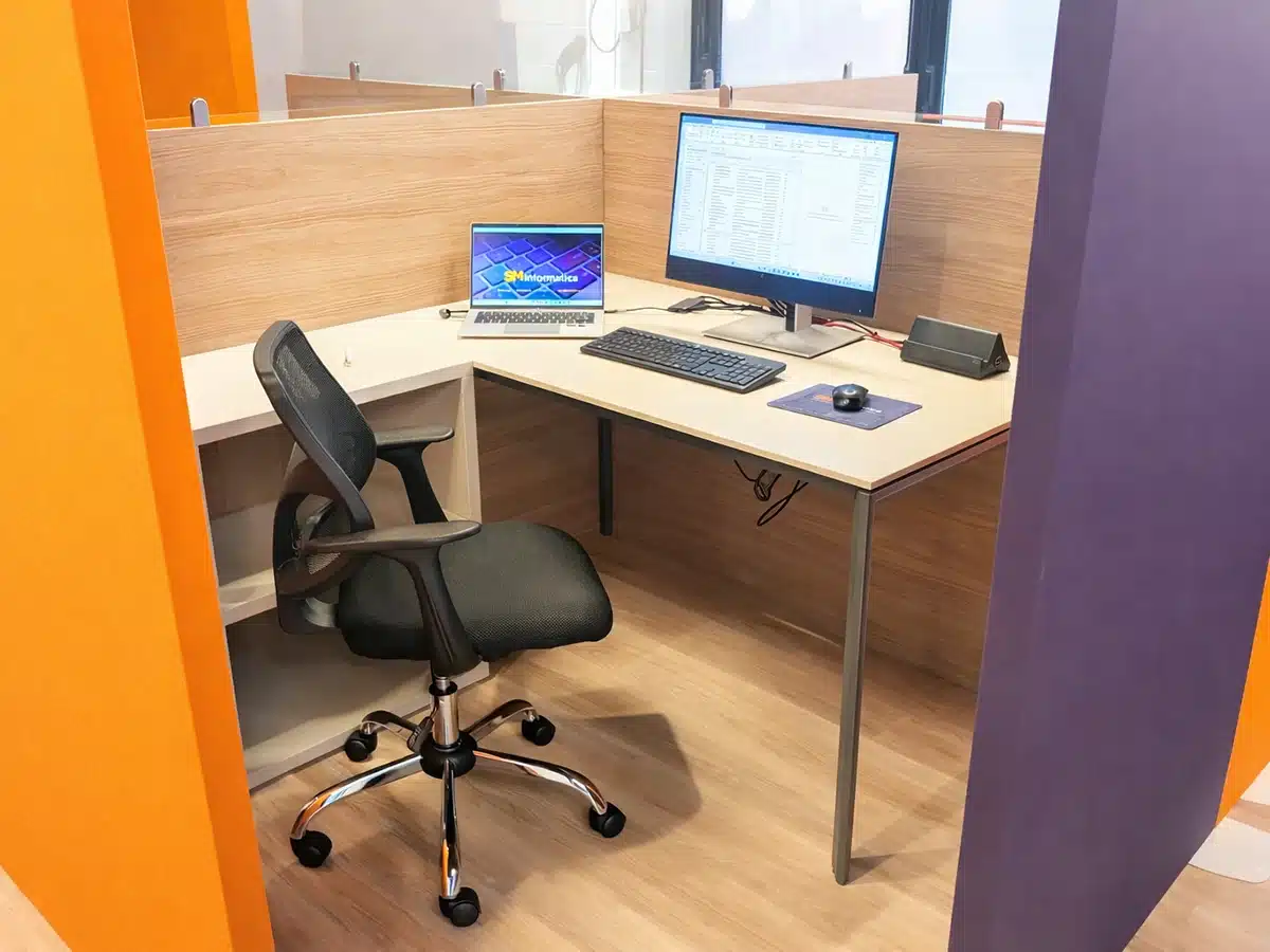 La scrivania ampia con sedia ergonomica garantisce comfort e funzionalità, mentre l’infrastruttura tecnologica e i servizi inclusi permettono di lavorare in modo efficiente fin dal primo giorno. La soluzione comprende: